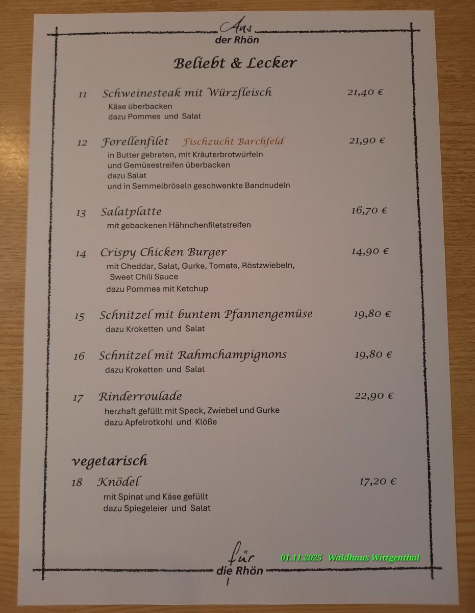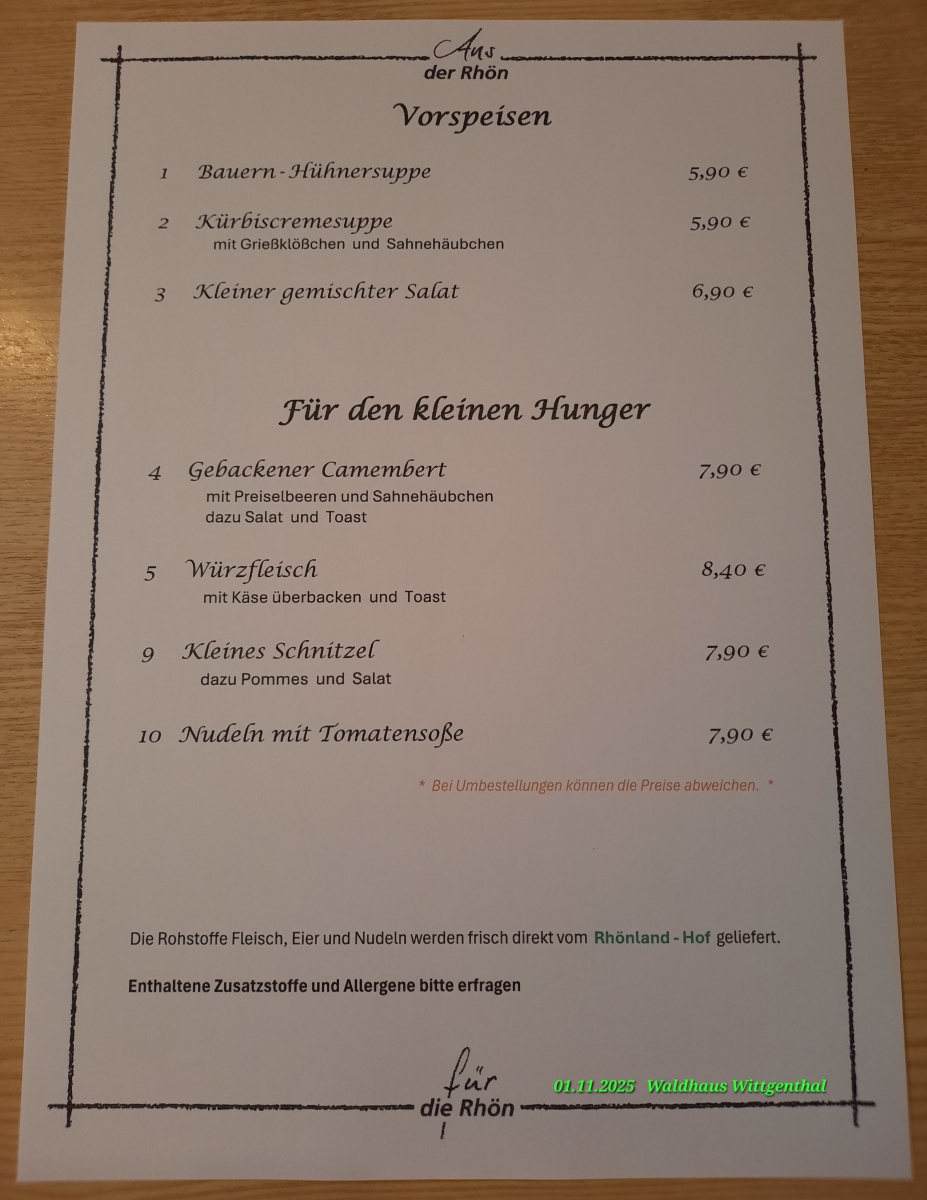 Wir nehmen Ihre Vorbestellung gerne telefonisch unter 036848-8690 entgegen. + zusätzliches Tagesangebot nachfragen